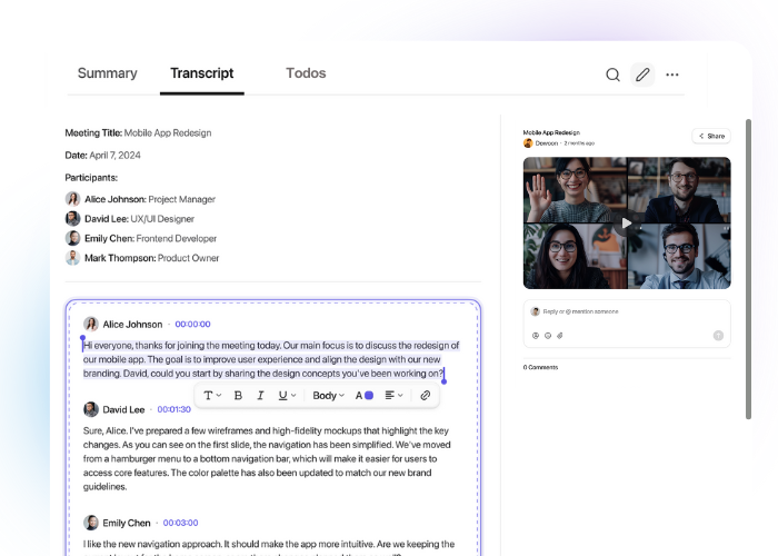 Unlock a Complete Memory of Your Meetings — No more missed insights, forgotten action items, or inaccurate recollections. All your meetings, recorded, searchable, and easily accessible in one place.